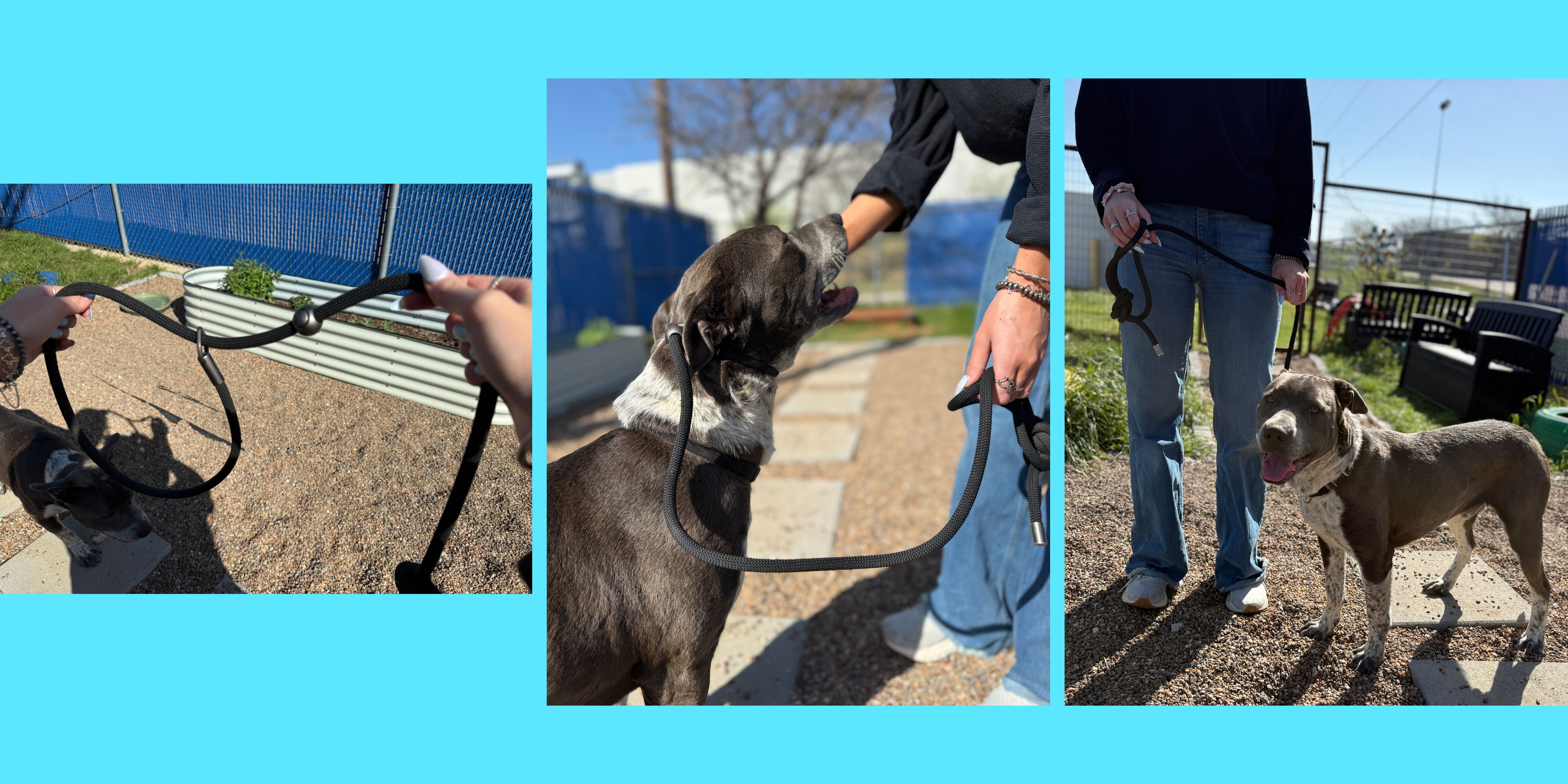 ✔ Stay Aware – Watch doorways, other dogs, and volunteers moving through the shelter to prevent tangles or sudden reactions.