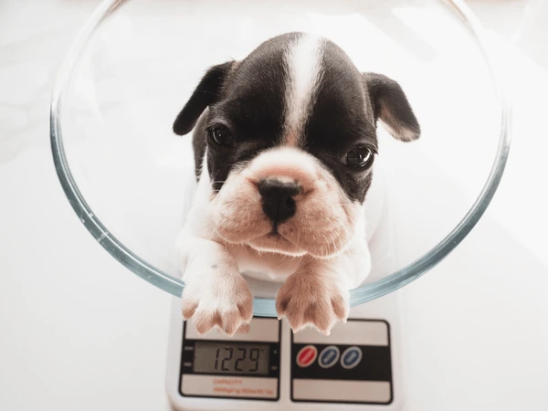 Use a digital kitchen scale for small animals or a bathroom scale for larger puppies. Always weigh before feeding for the most accurate results.