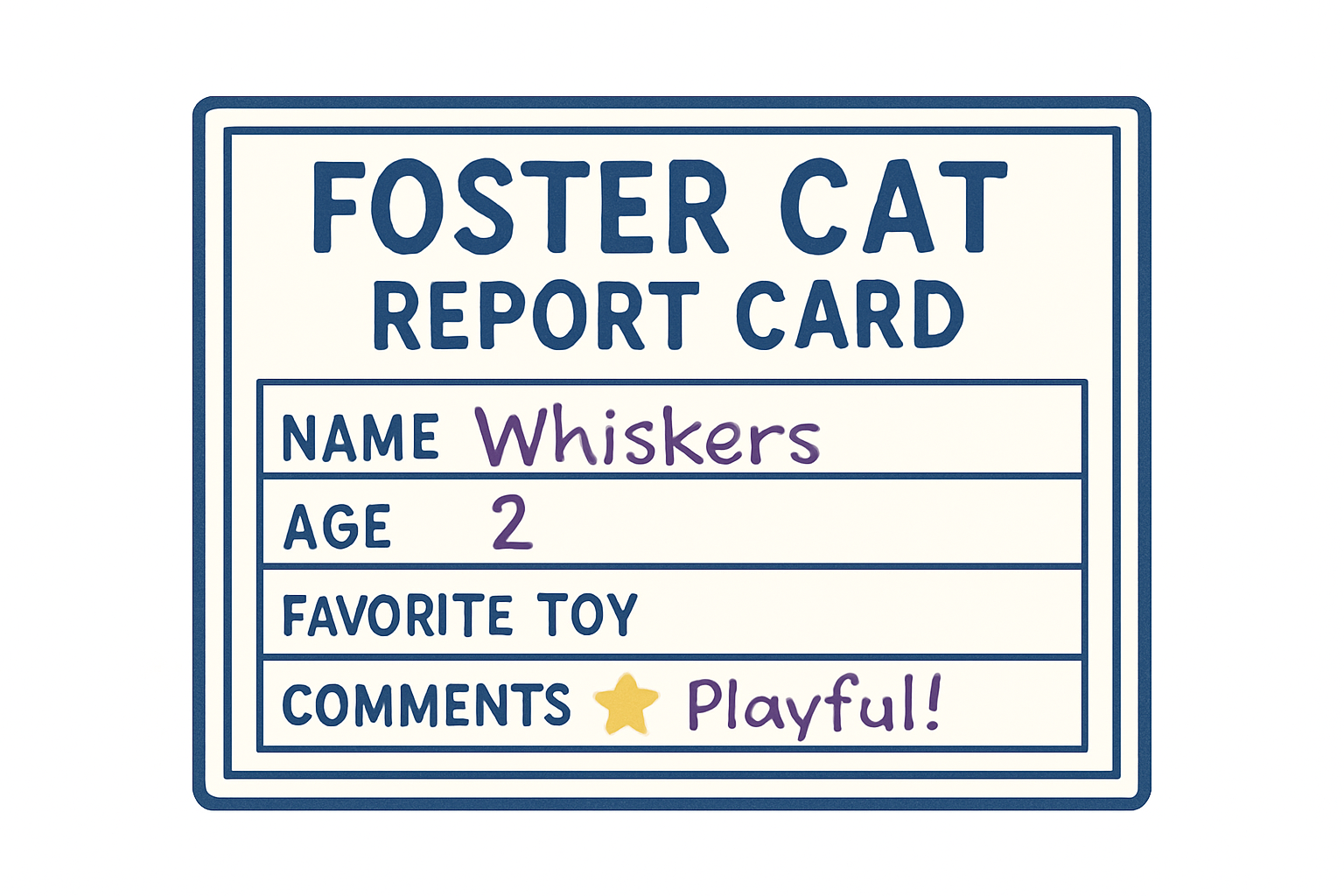 Foster report cards are essential because they provide valuable, firsthand insights into a kitten’s behavior and development outside the shelter. They help create a more complete picture of the kitten’s personality, habits, social skills, and needs—details that aren’t always seen in the shelter environment. This feedback is critical for writing accurate profiles, helping match kittens with the right adopters, and ensuring successful placements. Foster observations reduce returns, build trust with adopters and rescue partners, and ultimately increase each kitten’s chance of finding a lasting home.